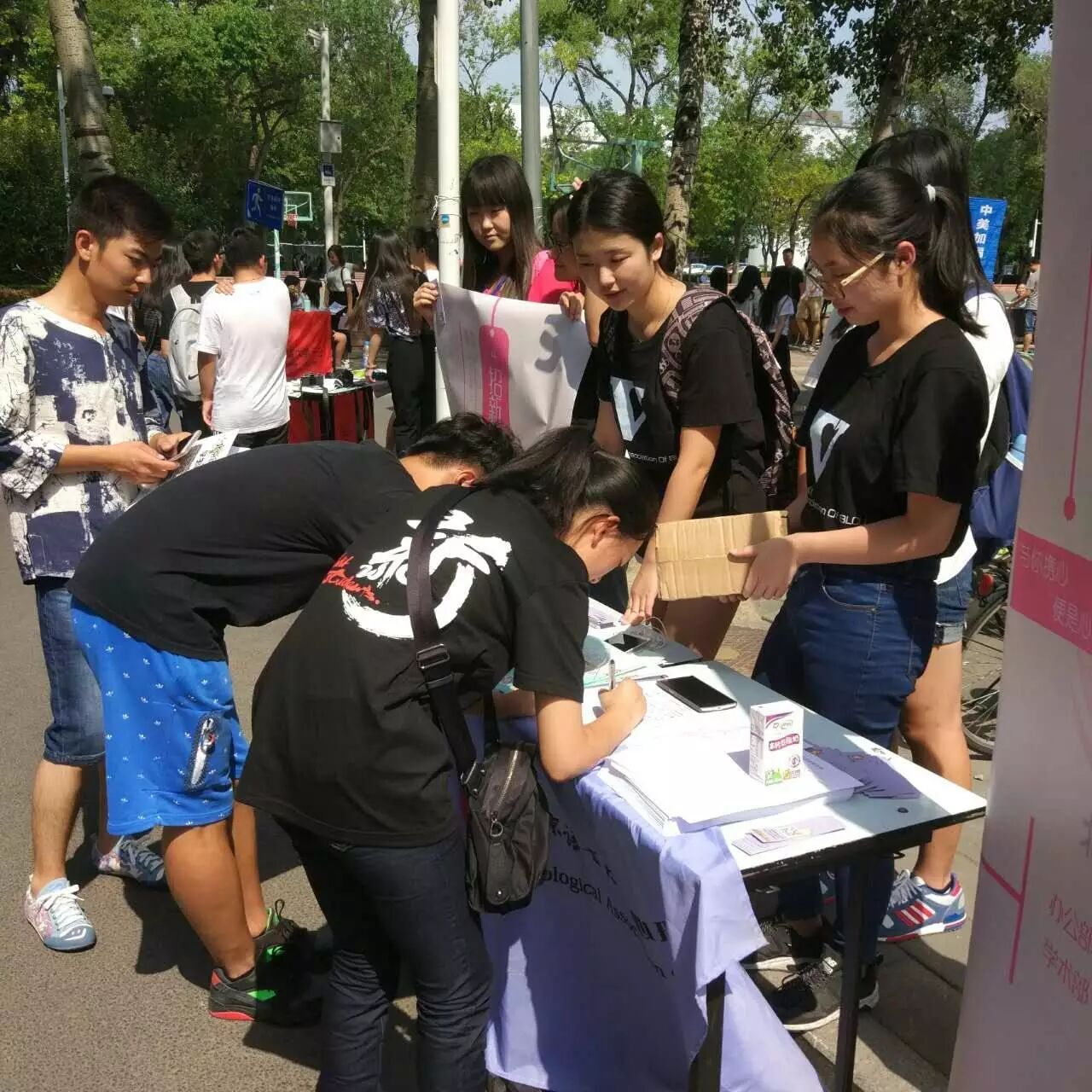 我们的展台吸引了许多学弟学妹前来咨询